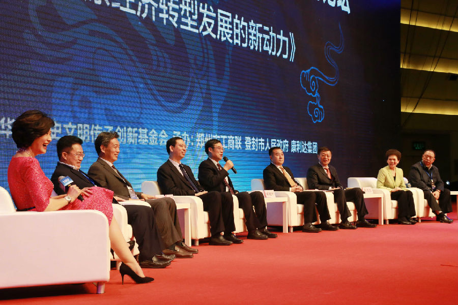 10月28日上午,“嵩山论坛——华夏文明与世界文明对话”2016年会在郑州国际会展中心轩辕堂开幕。全国人大常委会副委员长张宝文、省人大常委会副主任蒋笃运、副省长张广智、省政协副主席梁静、日本前首相鸠山由纪夫、中国国际文化交流中心秘书长丁奎淞出席开幕式。本届年会由中国国际文化交流中心、中国文物学会、北京大学高等人文研究院、河南省华夏历史文明传承创新基金会联合主办,河南康利达集团、嵩山论坛秘书处承办。年会的主题是“转化与创新:迈向对话文明”,设文化论坛和经济论坛,开展主旨演讲、学术研讨、圆桌对话、招商推介等多种经济和文化交流活动。