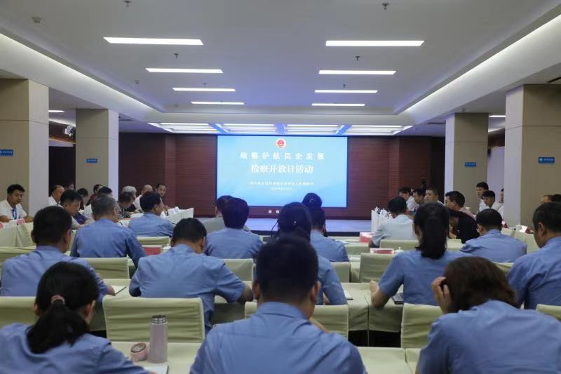 8月26日上午,航空港实验区人民检察院开展以“检察护航民企发展”为主题的检察开放日活动。区内民营企业界政协委员、民营企业家和公益保护监督员共30余位嘉宾应邀走进检察机关,参观了富士康检察联络站、区检察院办案区、12309检察服务中心,通过“三远一网”远程系统观看了远程提审,并与区检察院中层副职以上领导和部分干警进行了座谈。
