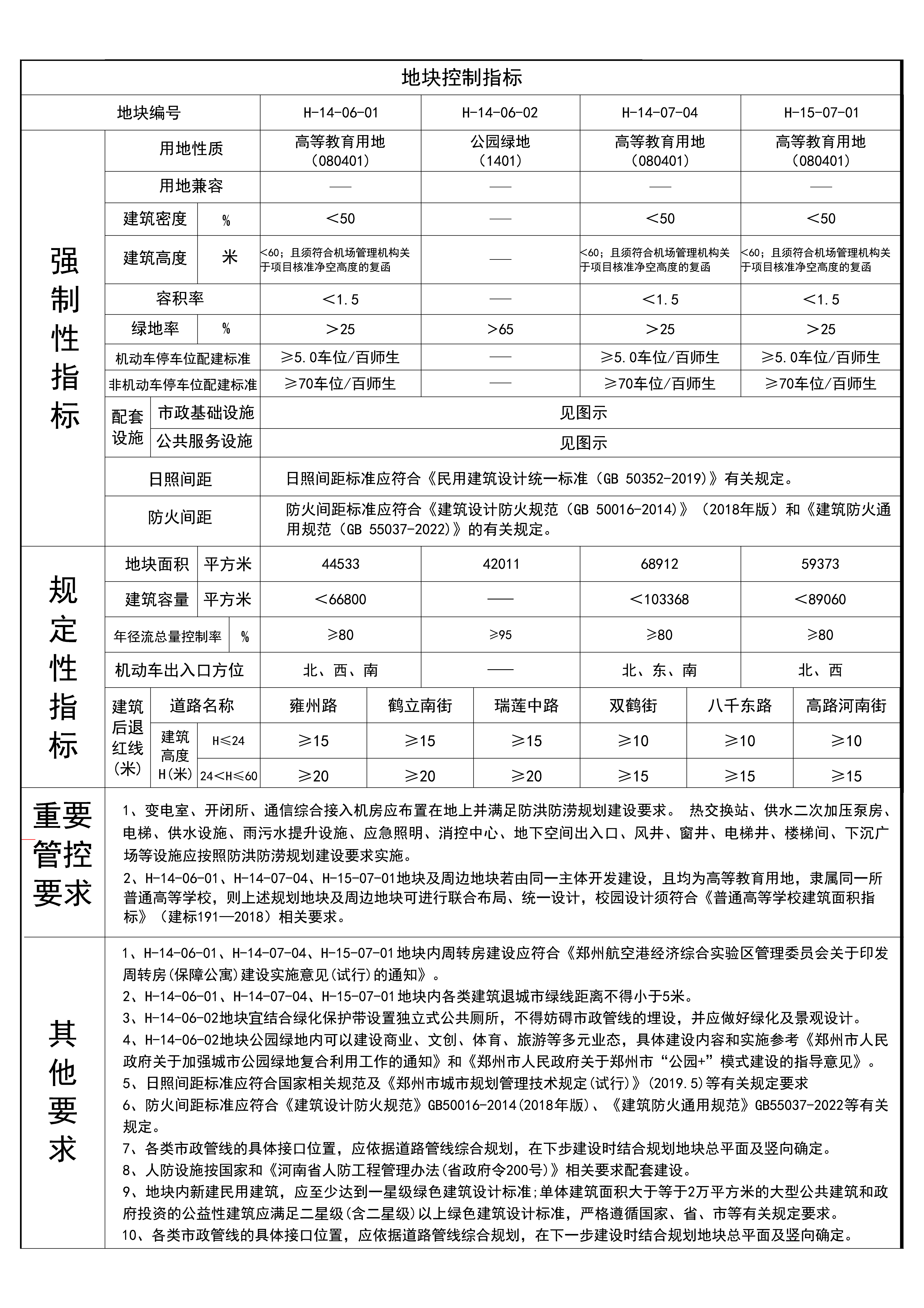 (3)新编第H-14-06-01地块用地控制指标:建筑密度小于50%;建筑高度小于60米,且须符合机场管理机构关于项目核准净空高度的复函;绿地率大于25%;容积率小于1.5。