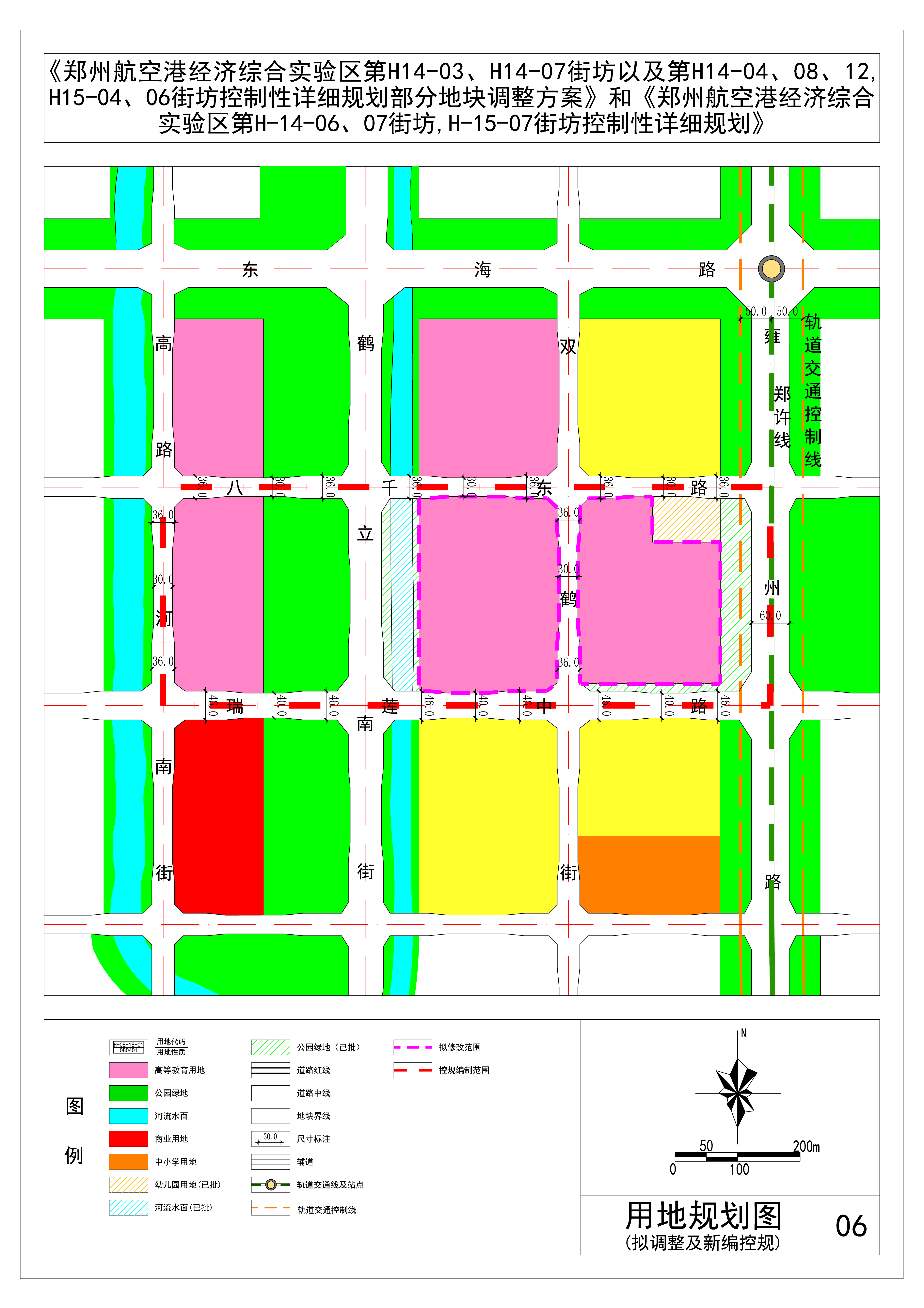 调整后新编控规为《郑州航空港经济综合实验区第H-14-06、07街坊,H-15-07街坊控制性详细规划》,第H-14-06-01地块为高等教育用地,第H-14-06-02地块为公园绿地,第H-14-07-04地块为高等教育用地,第H-15-07-01地块为高等教育用地。
