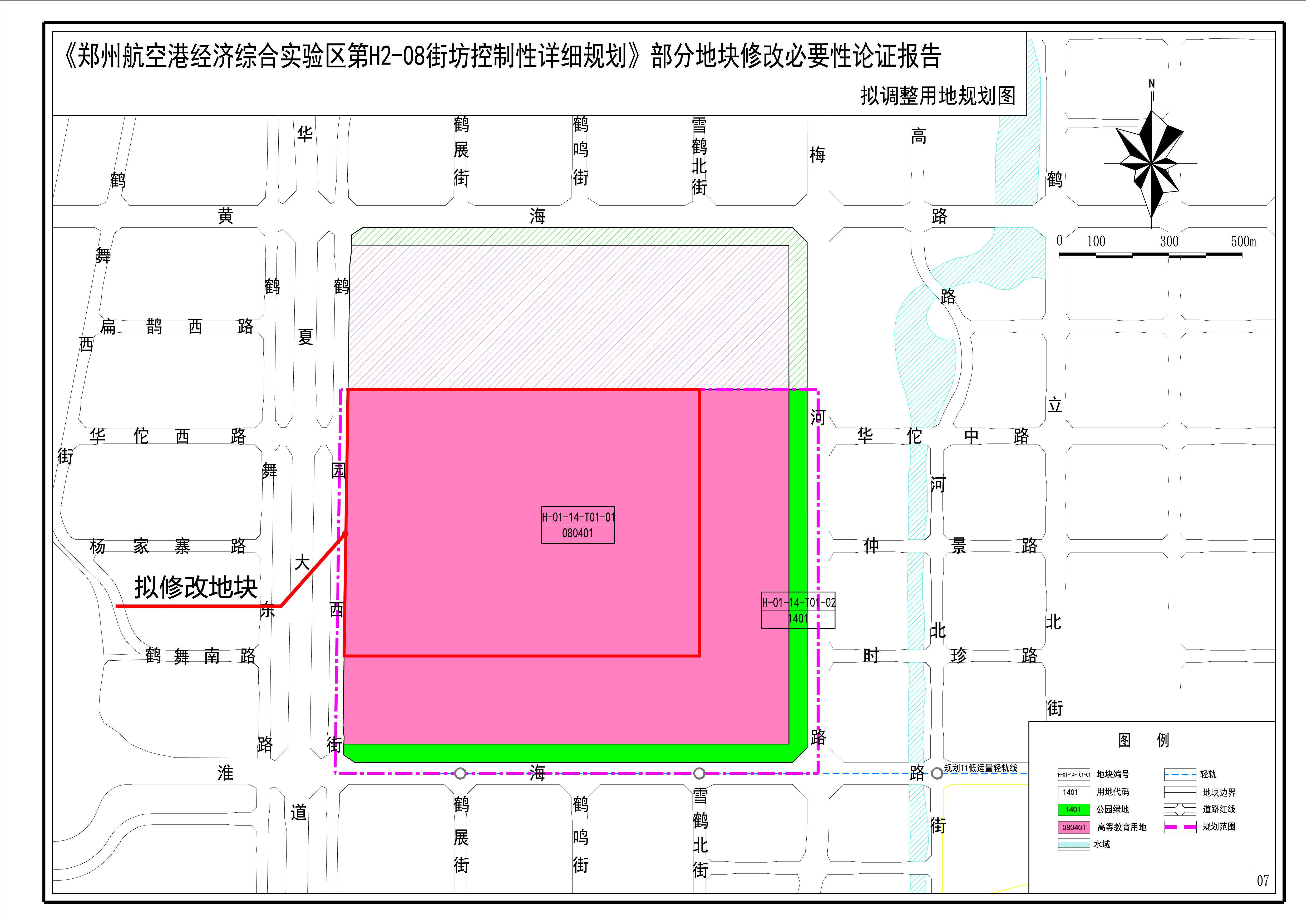 (1)将《郑州航空港经济综合实验区第H2-08街坊控制性详细规划》中H2-08-03地块部分用地性质由一类工业用地、城镇村道路用地调整为高等教育用地;
