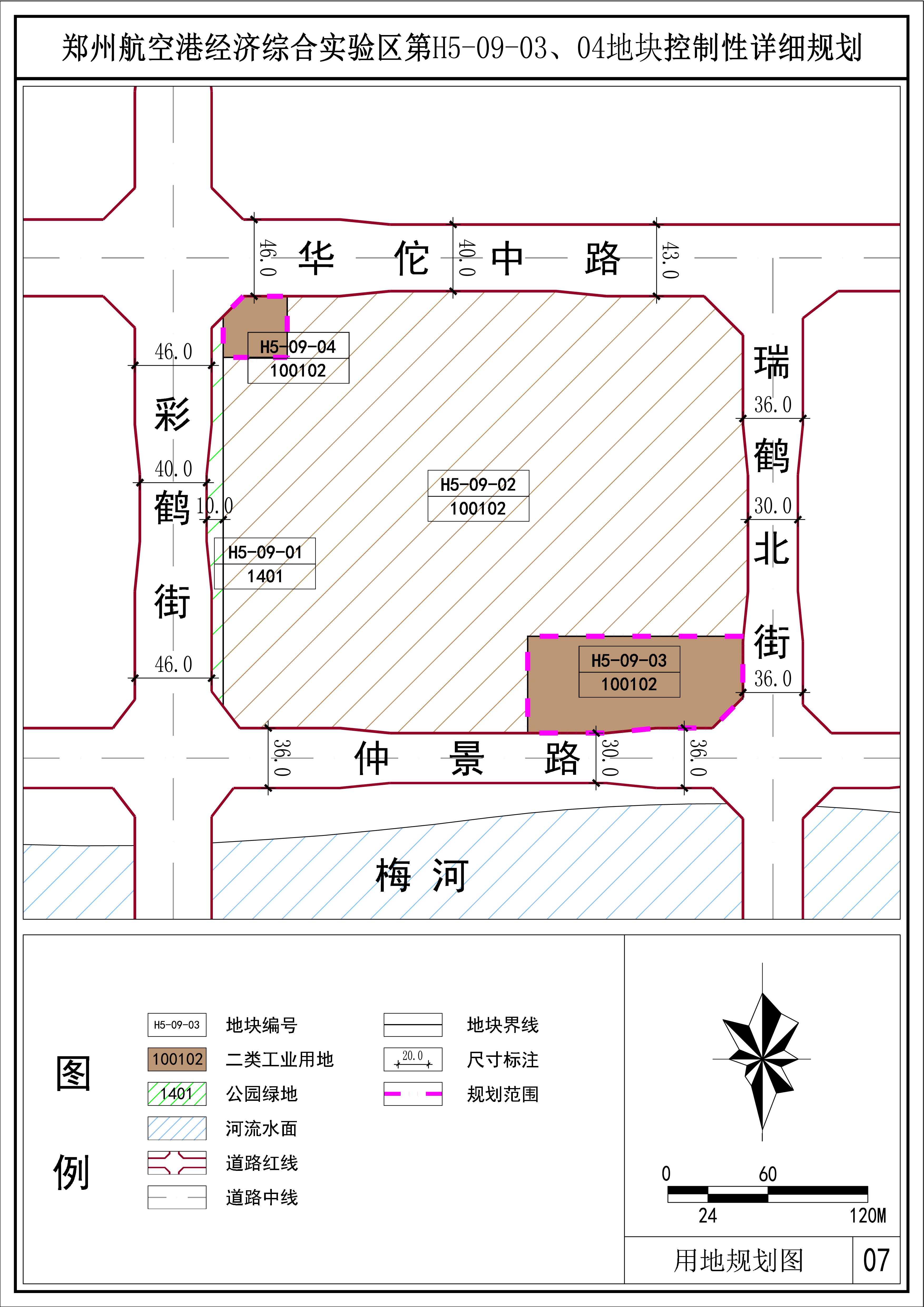 用地位置: | 第H5-09-03、04地块为华佗中路、彩鹤街、仲景路、瑞鹤北街四条城市道路围合而成的街坊内的局部地块。 |