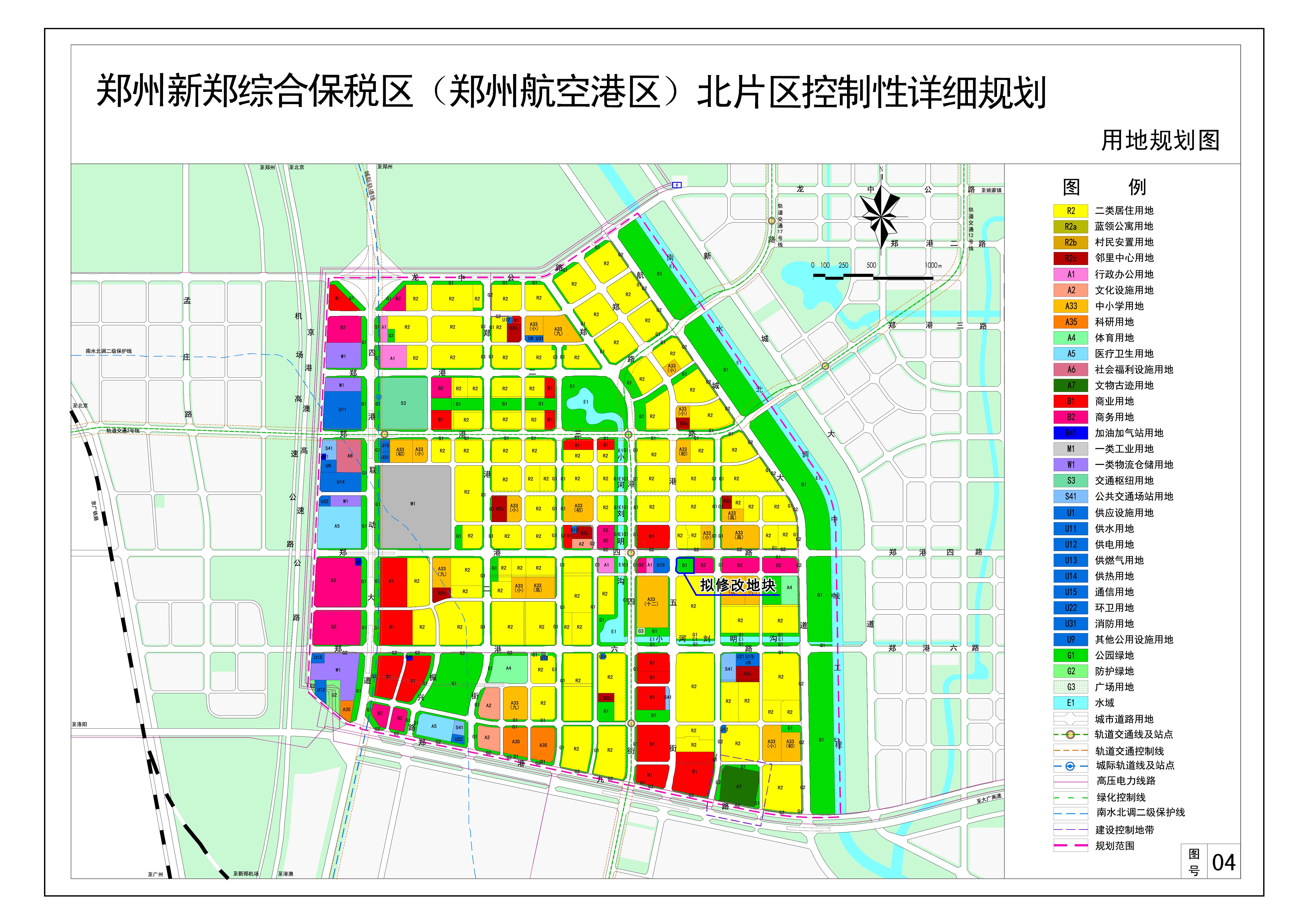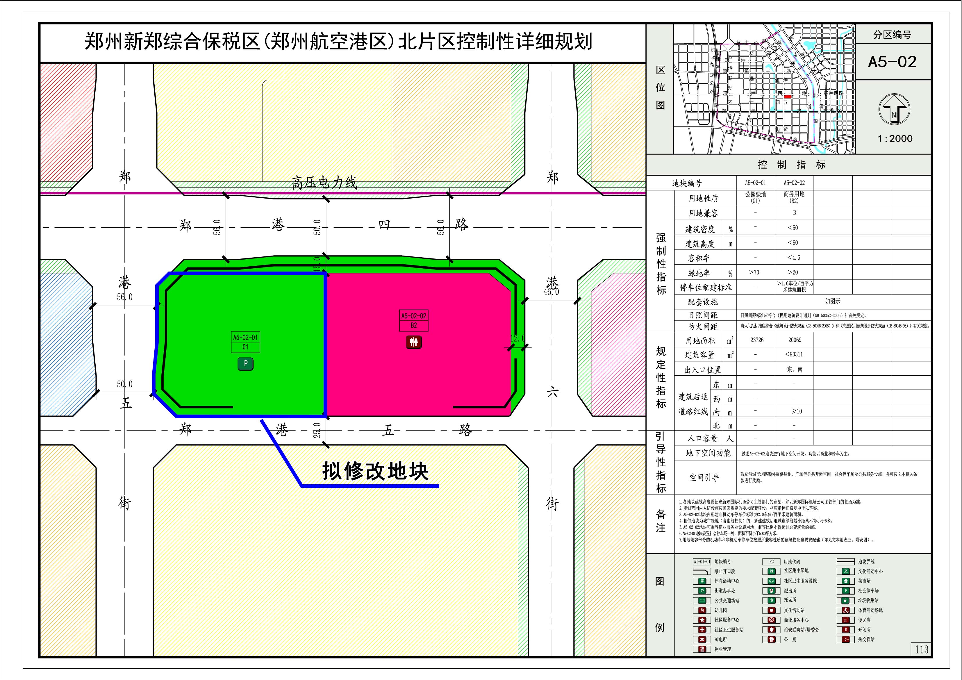 (1)将《郑州新郑综合保税区(郑州航空港区)北片区控制性详细规划》中A5-02-01地块部分用地性质由公园绿地调整为文化用地;
