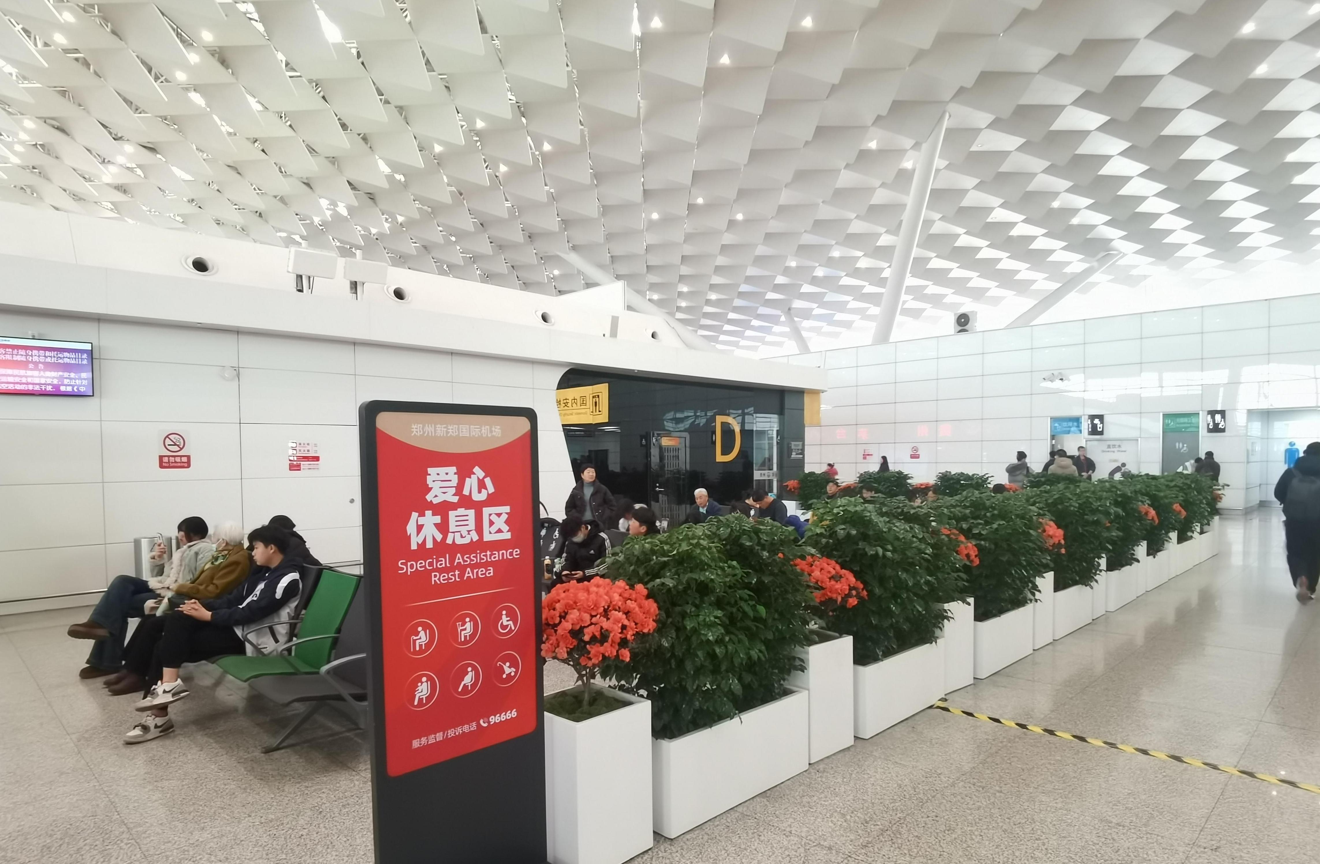 春节前,针对送老人、儿童等旅客家属比较多的情况,郑州机场今年春运开始后,首次在T2航站楼四层出发厅值机D岛东端设立了临时休息区,让送机的旅客在这里安静一会,等到亲朋好友乘坐的飞机起飞了就可以放心离去。2月7日傍晚,一位旅客在通过安检时,将一装有万元现金的小件行李遗忘在安检通道内,两位安检人员及时发现后,仅用22分钟将万元现金送到登机口,这时旅客才发现自己的钱不见了。一“我帮您”志愿者在郑州机场T2航站楼出发厅遇一外籍旅客,因为一时连不上网络而着急,这位志愿者就用自己的手机流量,让外籍旅客得以在郑州向远隔万里的家人报了平安。