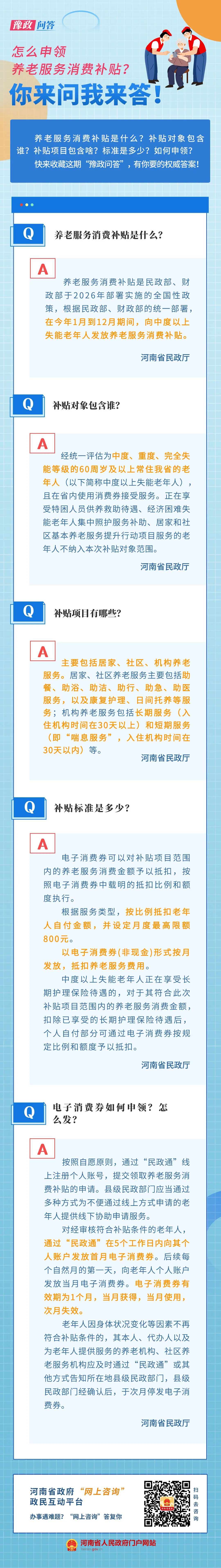 近日,省民政厅、省财政厅发布《关于实施向中度以上失能老年人发放养老服务消费补贴项目的通知》,明确了补贴范围、申请流程、机构管理及监管要求等全环节事项,为失能老人及其家庭减轻照护负担。该项目自2026年1月启动,至2026年12月31日结束,符合条件的老人可按规范流程申请。