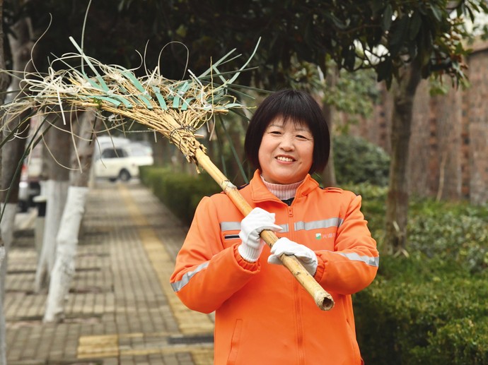 她的“工位”是每条街道、每个角落。寒来暑往,风雨兼程,凌晨的星辉与清晨的朝霞是她最熟悉的风景。尘土落叶是日常,汗水浸透是常态。在她看来,扫去每片落叶,城市便多一分清新;洁净每条道路,家园就更添一分亮色。
