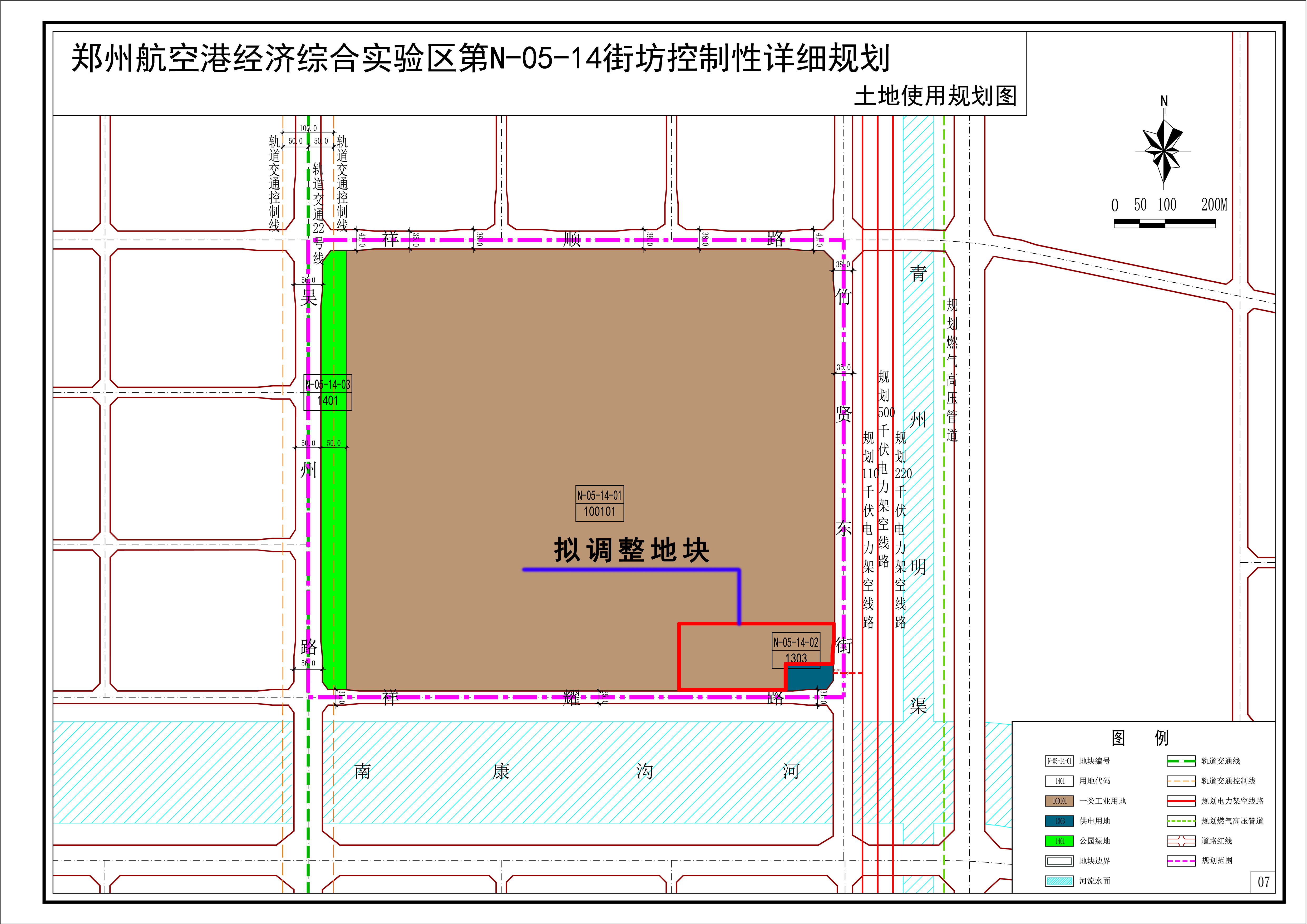(1)将《郑州航空港经济综合实验区第N-05-14街坊控制性详细规划》中局部地块用地性质由一类工业用地调整为供电用地;