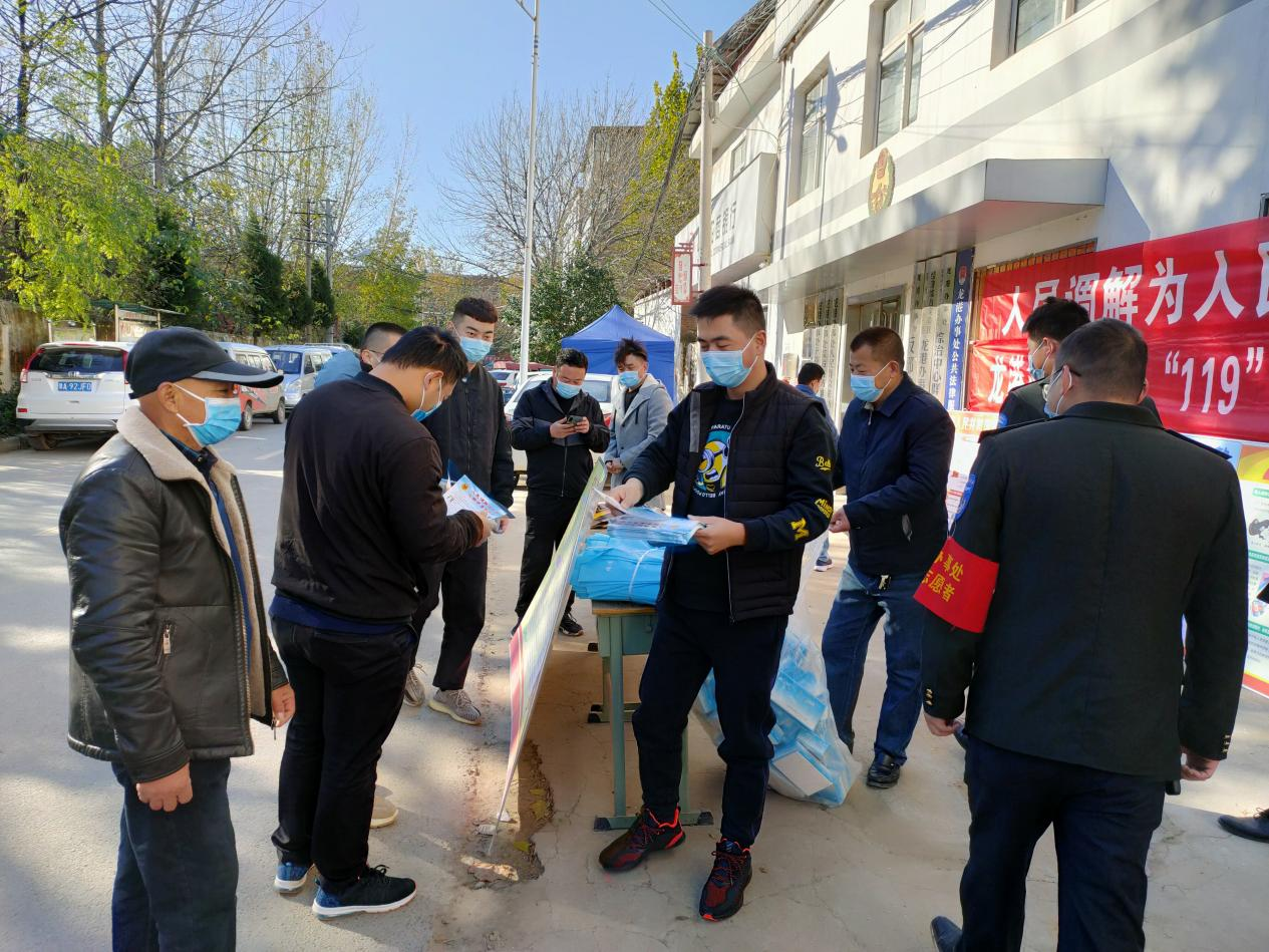 11月9日,工作人员在综治信访办门前通过悬挂宣传条幅、向过往群众发放宣传彩页、抽纸、手提袋等宣传品,给大家讲解《人民调解法》相关内容,对人民调解的程序、效力、指导和保障等内容进行宣传,营造学法、知法、用法的良好氛围。